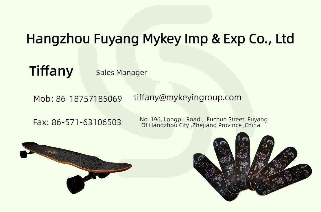 Noi Hangzhou Fuyang Mykey Company, siamo fornitori professionali di skateboard e accessori.